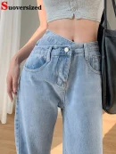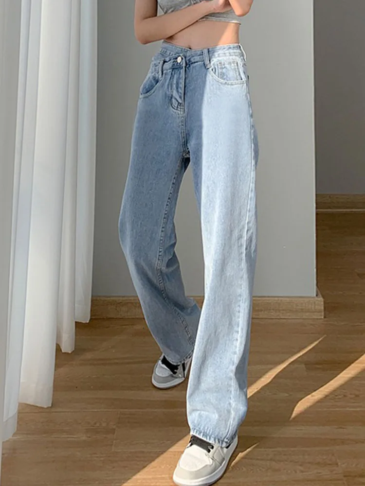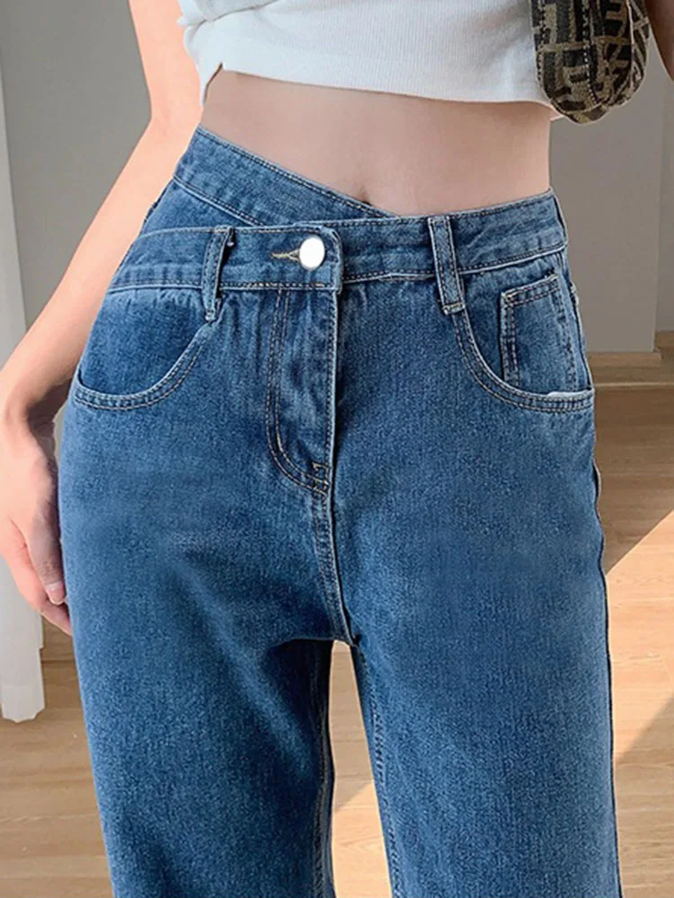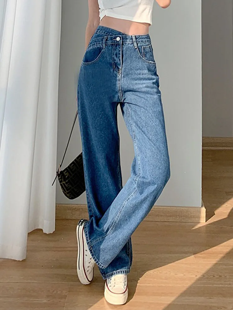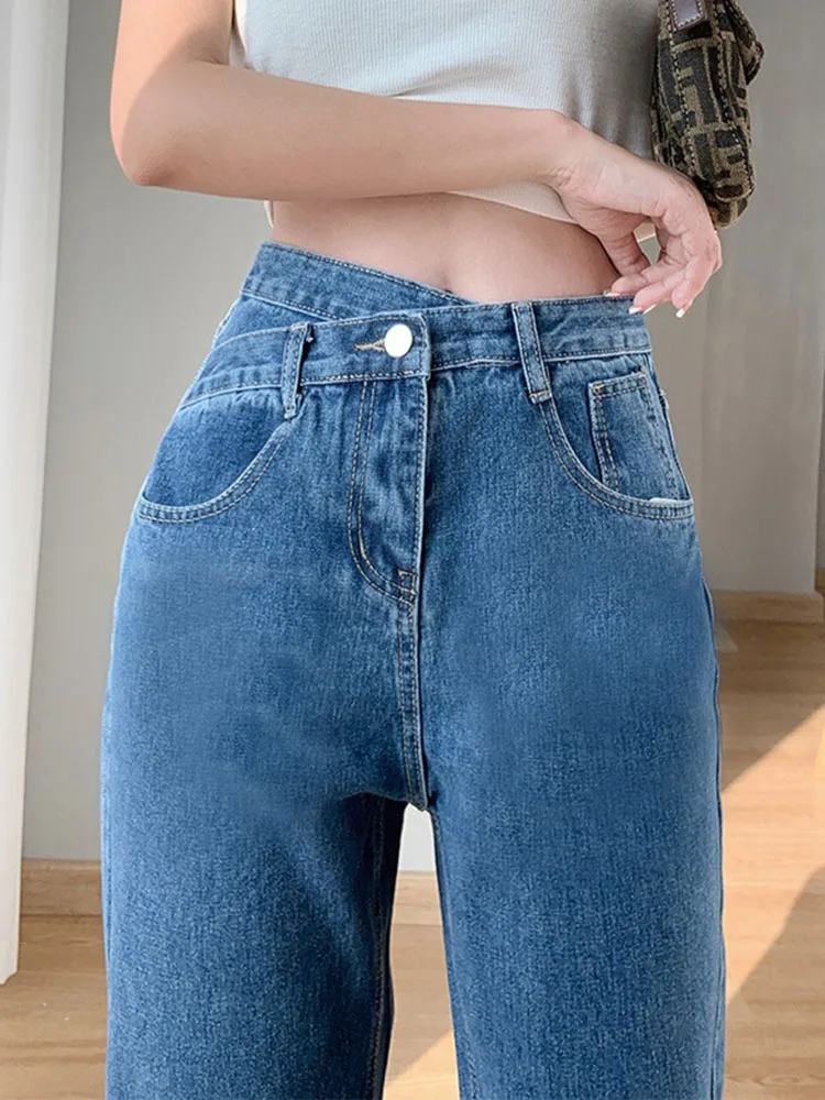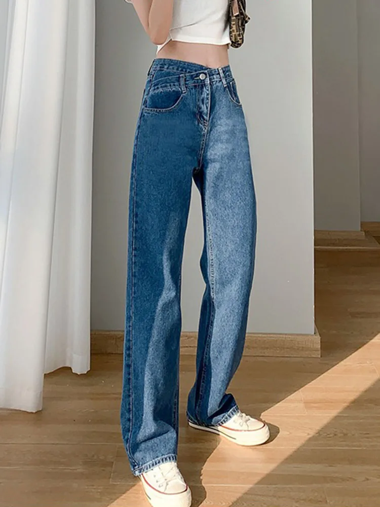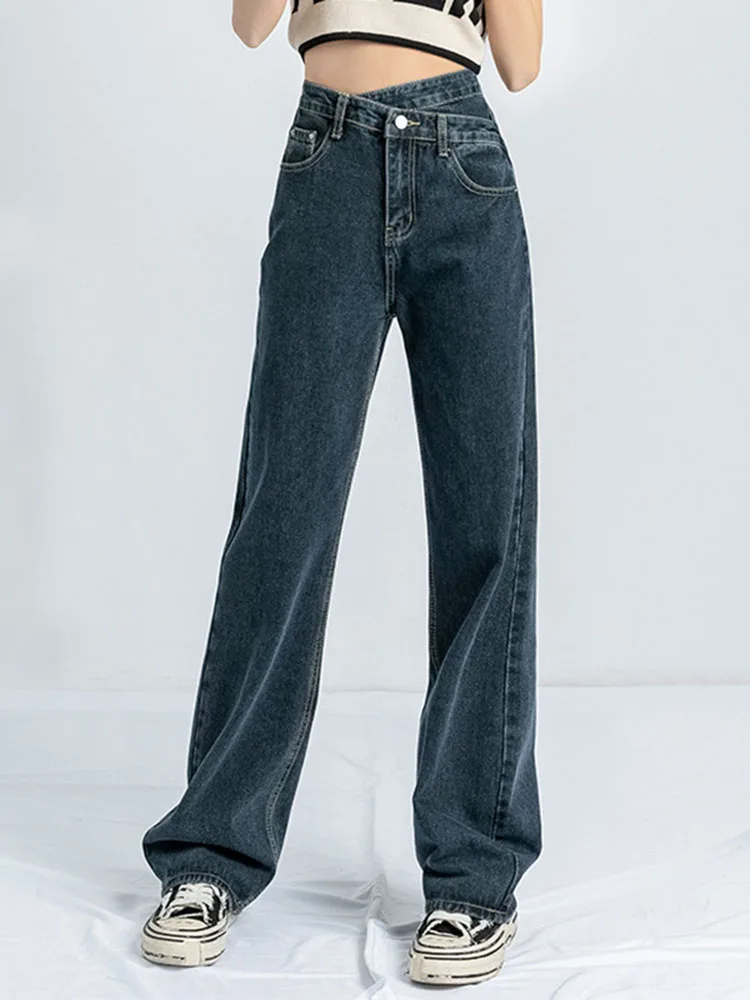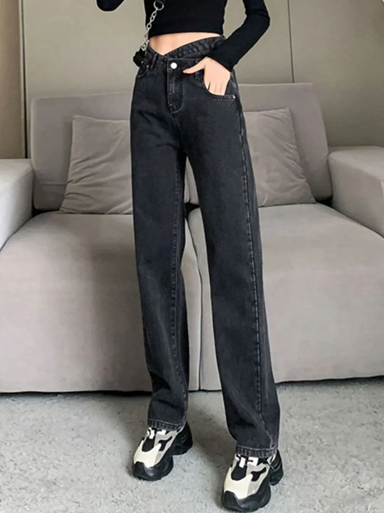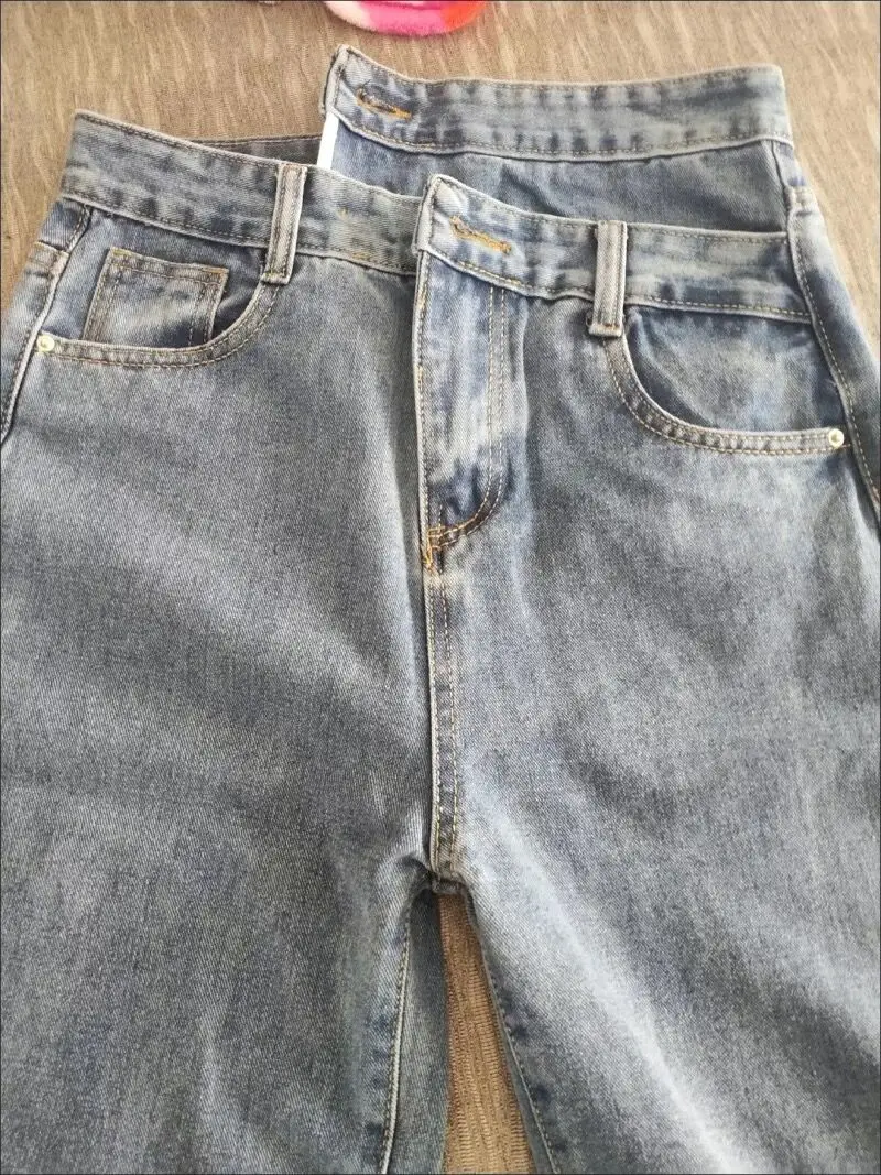 • Korean design calca feminina: female straight denim trousers women